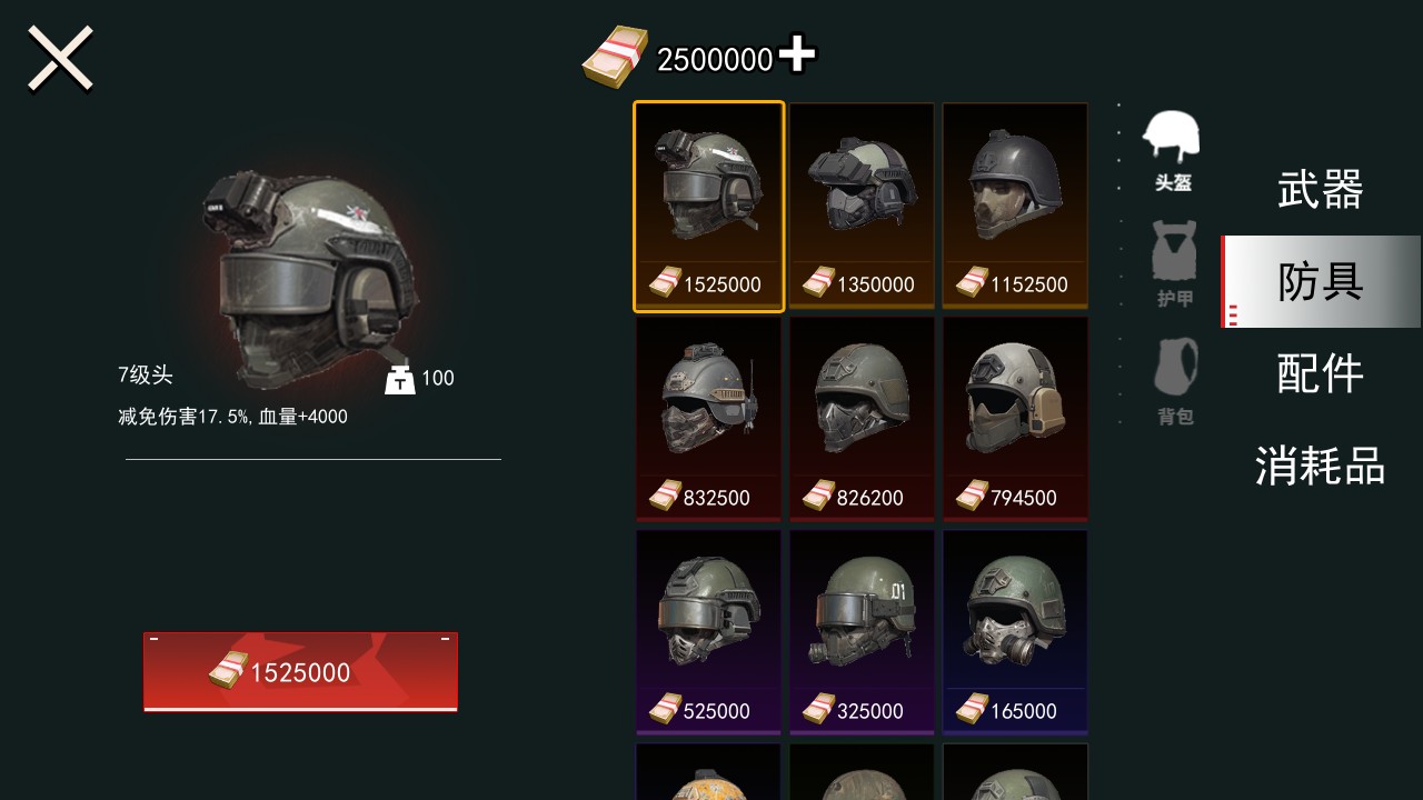 3、战斗过程中能获取5级头、医疗包等装备,打开装备栏,选择合适的装备提升自身战力。