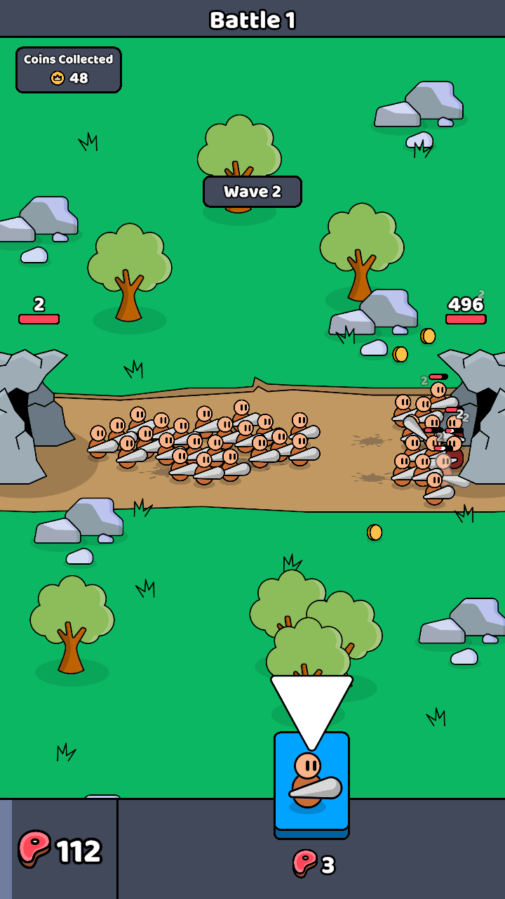 3、持续战斗,派出更多战士,同时留意收集金币,为后续升级等操作做准备。