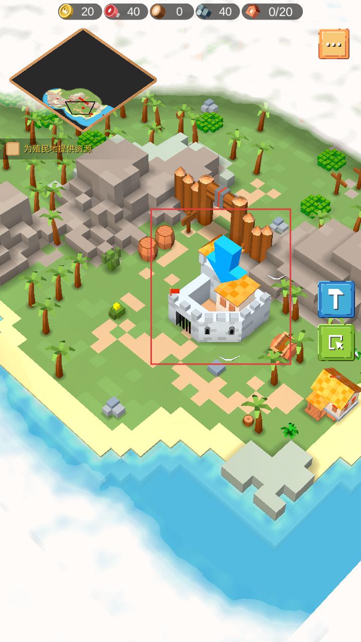 1、进入游戏,看到岛屿场景中的城堡,可对城堡进行操作,为后续的资源获取和防御等工作做准备。