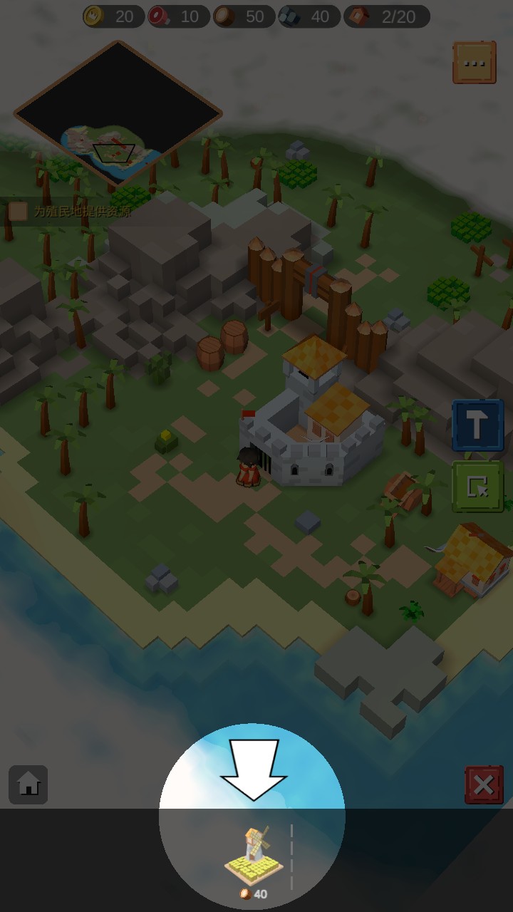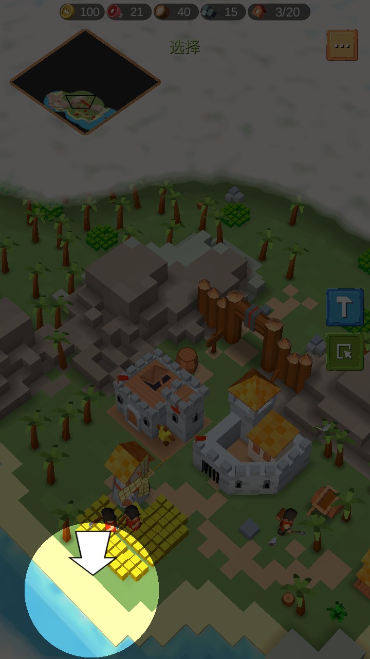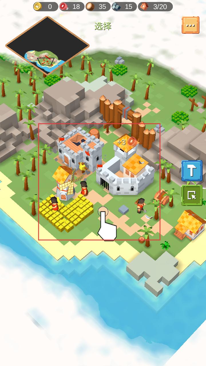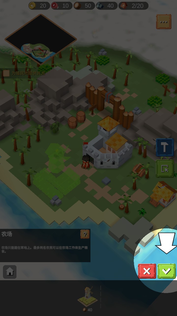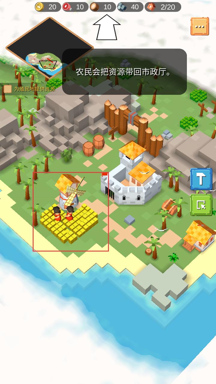 3、在岛屿上建造农田等设施,农民会在农田劳作,将收获的资源带回市政厅,助力城堡发展。