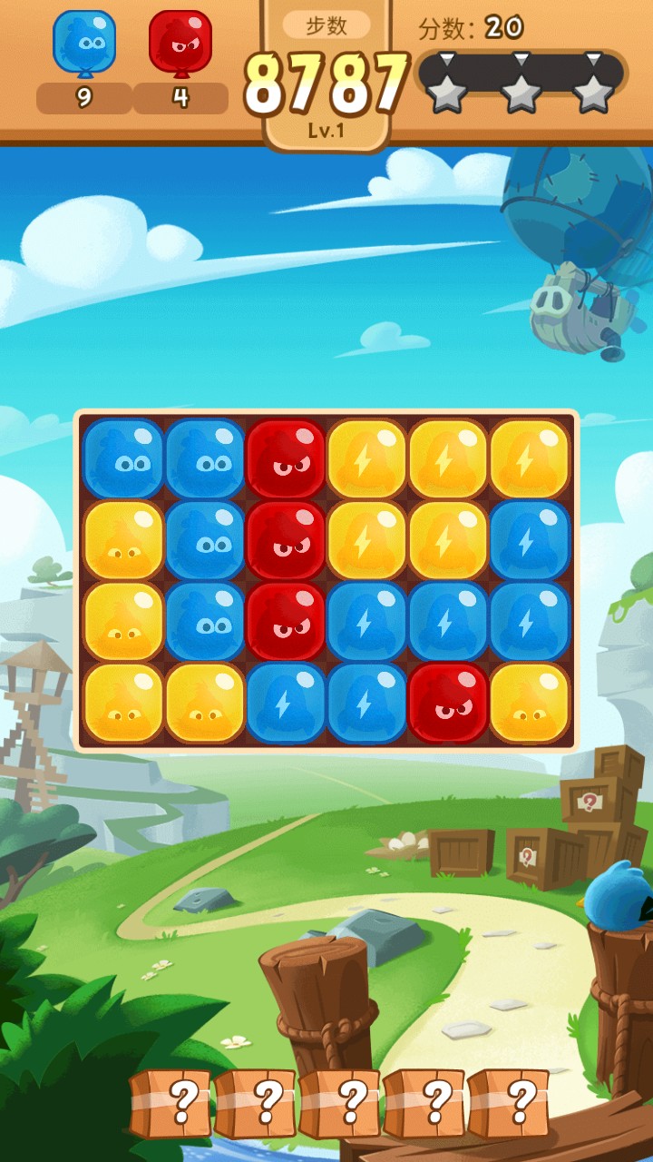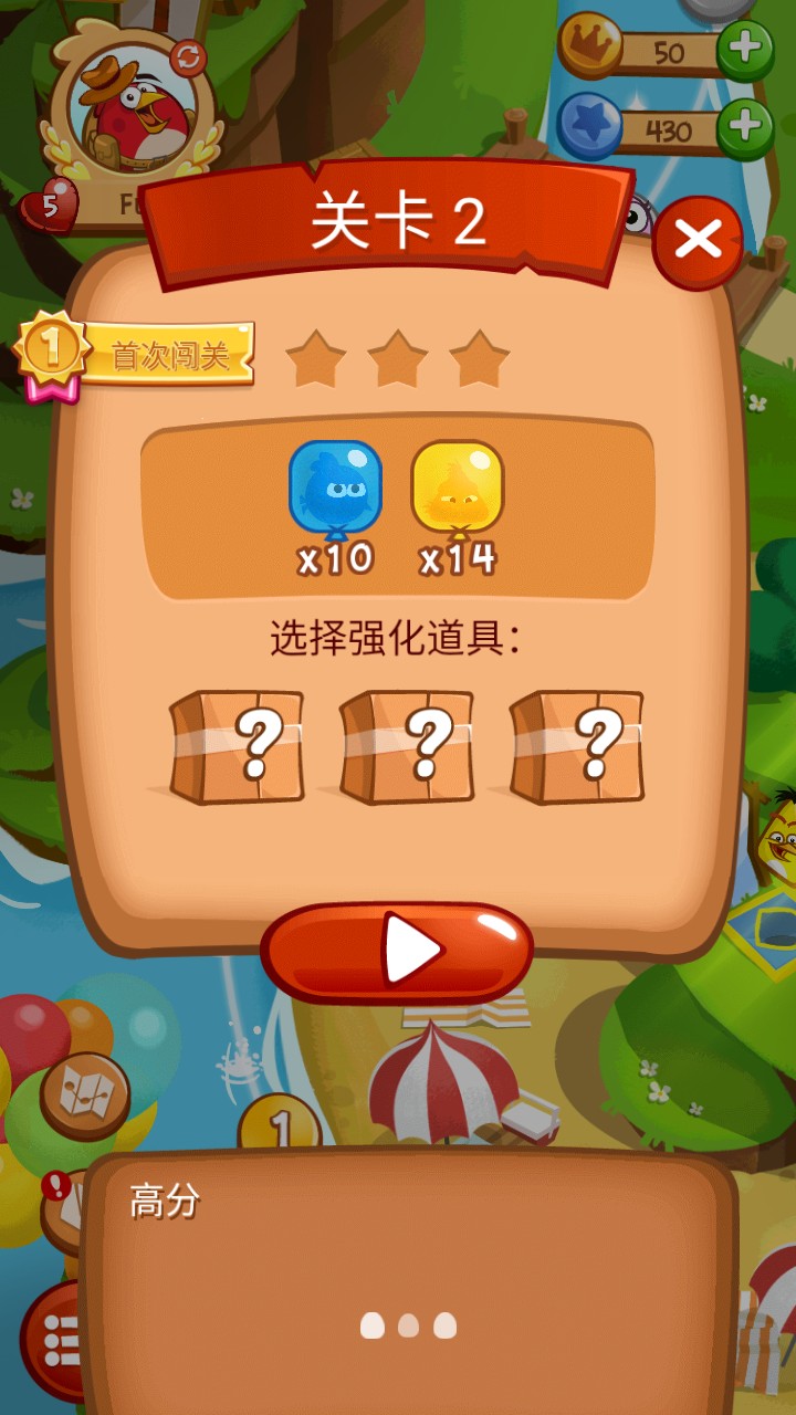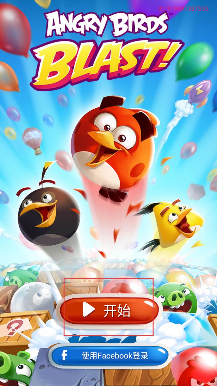 1、进入游戏先看到带有愤怒的小鸟、气球元素的标题界面,点击开始即可开启三消益智的冒险之旅。