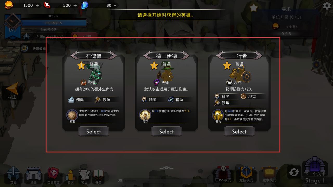 2、选择开始时获得的英雄,有石傀儡、法师、坦克等不同类型,每种英雄有独特属性,以此构建战略组合。