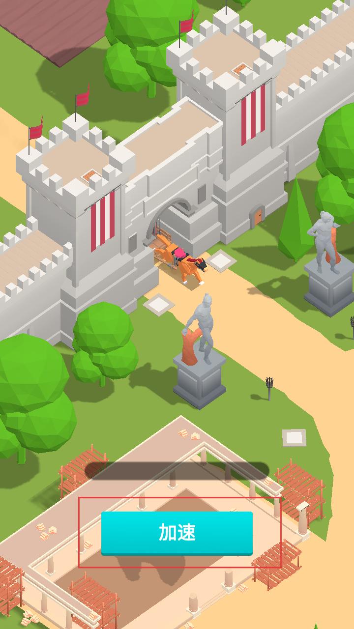 1、游戏中有加速功能,点击加速可推动建筑建造等进程,快速发展竞技场相关设施。