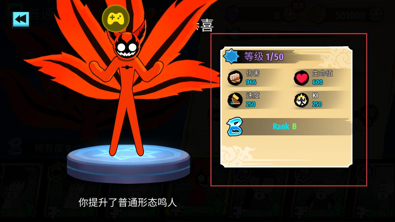 4、构建包含武器强化、忍术研修、体术锻炼在内的三维成长体系,所有升级项目采用可视化进度条设计,通过战斗积累的经验值可自由分配发展方向。