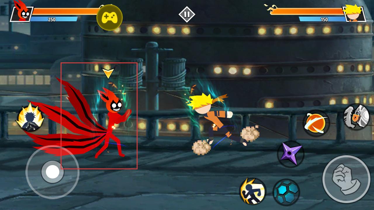 4、战斗时通过虚拟摇杆操控角色移动,点击技能按钮释放忍术,与敌人展开格斗,利用不同技能和武器组合,击败对手。