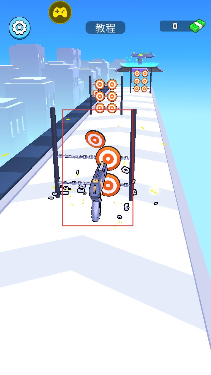 1、教程关卡中操控枪械射击靶标和链条等障碍物,熟悉射击操作,为后续闯关打好基础。