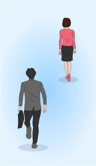 1、进入游戏后,操控男性角色开始跟踪前方的女性角色,注意观察女性角色的行动节奏,预判其可能回头的时机。