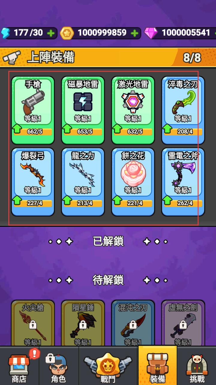1、在装备界面选择手枪、磁暴地雷等装备上阵,搭配不同装备组合,为屠龙战斗做好准备,开启多样战斗流派的构建。