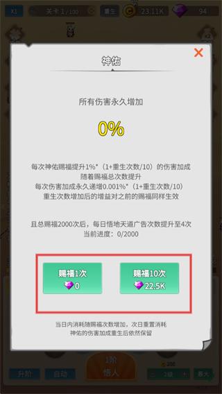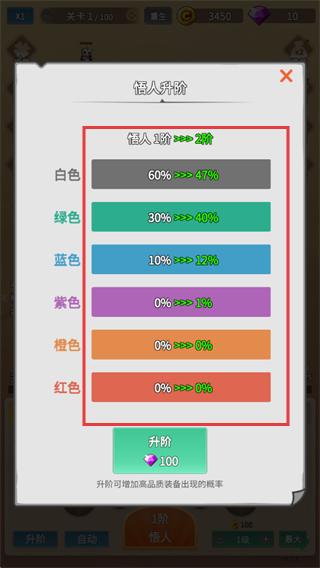 1、可进行悟人升阶,消耗100钻石,升阶后白色、绿色等品质装备出现概率提升,助力角色成长,在Roguelike冒险中更易获得高品装备。