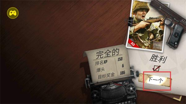 4、任务胜利后,查看排名、爆头数等数据,点击下一个继续挑战,解锁更多任务与定制武装装备,体验子弹时间特写与战术指挥系统的策略玩法。