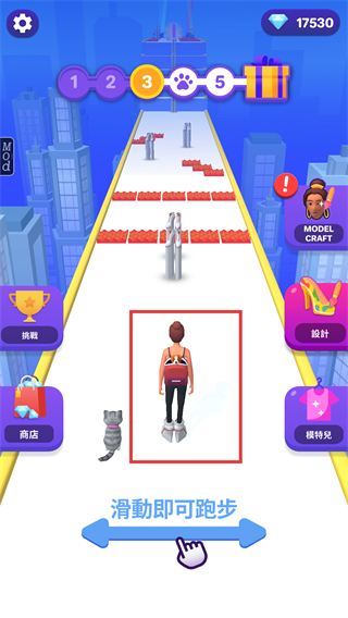 4、滑动屏幕控制角色跑步,在赛道上收集元素,躲避障碍,踩着高跟鞋开启跑酷挑战,体验魔性跑酷的乐趣。