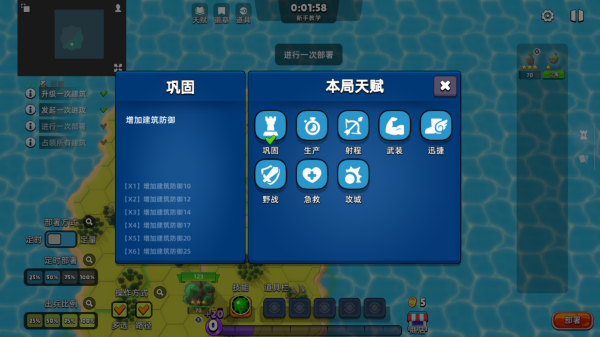 3、天赋升级优先点选“生产”与“迅捷”,提升兵力产出效率与移动速度,快速扩大势力范围。