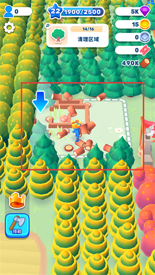 3、操控角色在指定区域内活动,清理该区域的树木等障碍物,完成区域清理的进度要求。