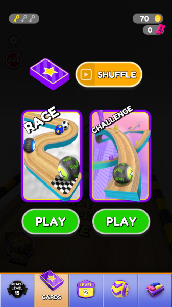 1、画风Q萌治愈,球球造型多样且可自定义,赛道场景丰富,视觉体验清新明快,适配全年龄段审美。