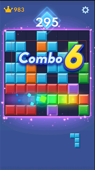 2、视觉反馈强调解压与爽快感。方块消除时伴随屏幕震动与粒子飞溅效果,连消时更有华丽的动画表现,强化了正向操作反馈。