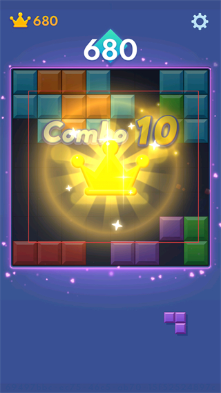 3、继续规划方块摆放完成更多消除,触发Combo 10的连锁效果,同时获取皇冠奖励提升游戏收益。
