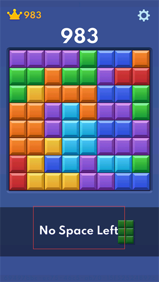 4、棋盘空间被填满后,游戏结束并显示No Space Left,查看最终得分,准备开启新的游戏挑战。