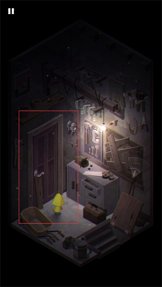 2、操控小女孩移动到房间的门旁,观察周围工具类物品,为后续与环境互动、解开机关做准备。