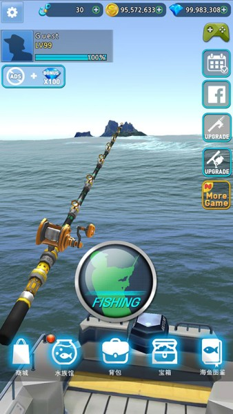 3、成功钓获后,可放入水族馆培育或直接出售,用收益升级渔具解锁新渔场。