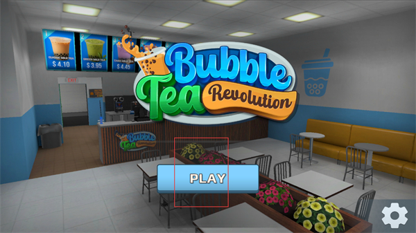 1、点击界面中的PLAY按钮,进入游戏的奶茶店经营场景,开启这场饮品制作与店铺管理的模拟体验。