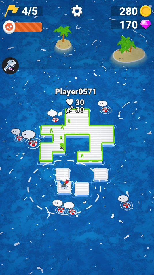 2、资源收集、木筏强化与对战环节衔接流畅,节奏紧凑不拖沓,兼具休闲性与竞技感。