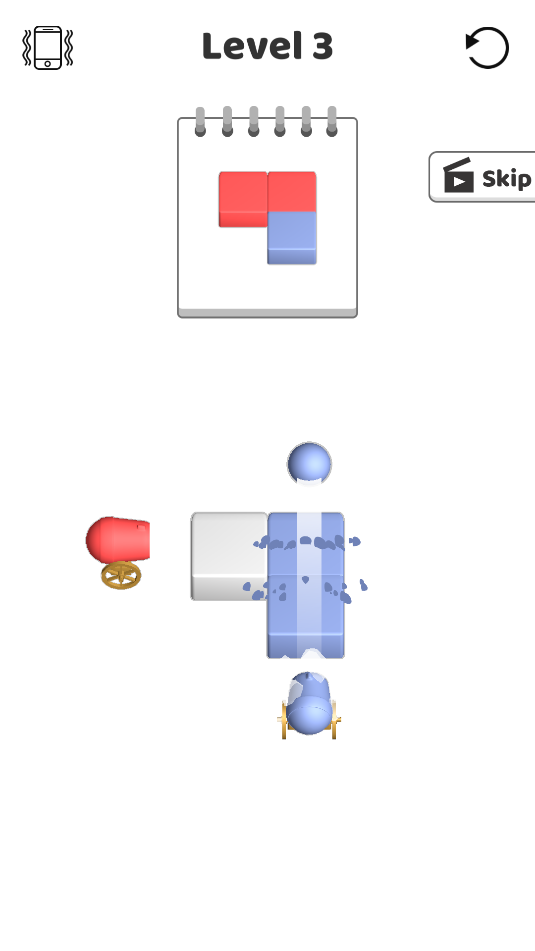 2、游戏中,以上方的颜色排列,点击下方的大炮发射出颜色炮弹,可以把下方的白色方块染出相应的颜色。