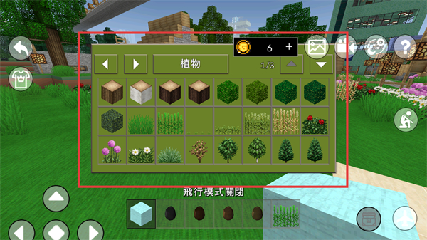 4、打开植物分类的方块面板,选择想要放置的植物方块,将其放置在场景中进行建造布置。