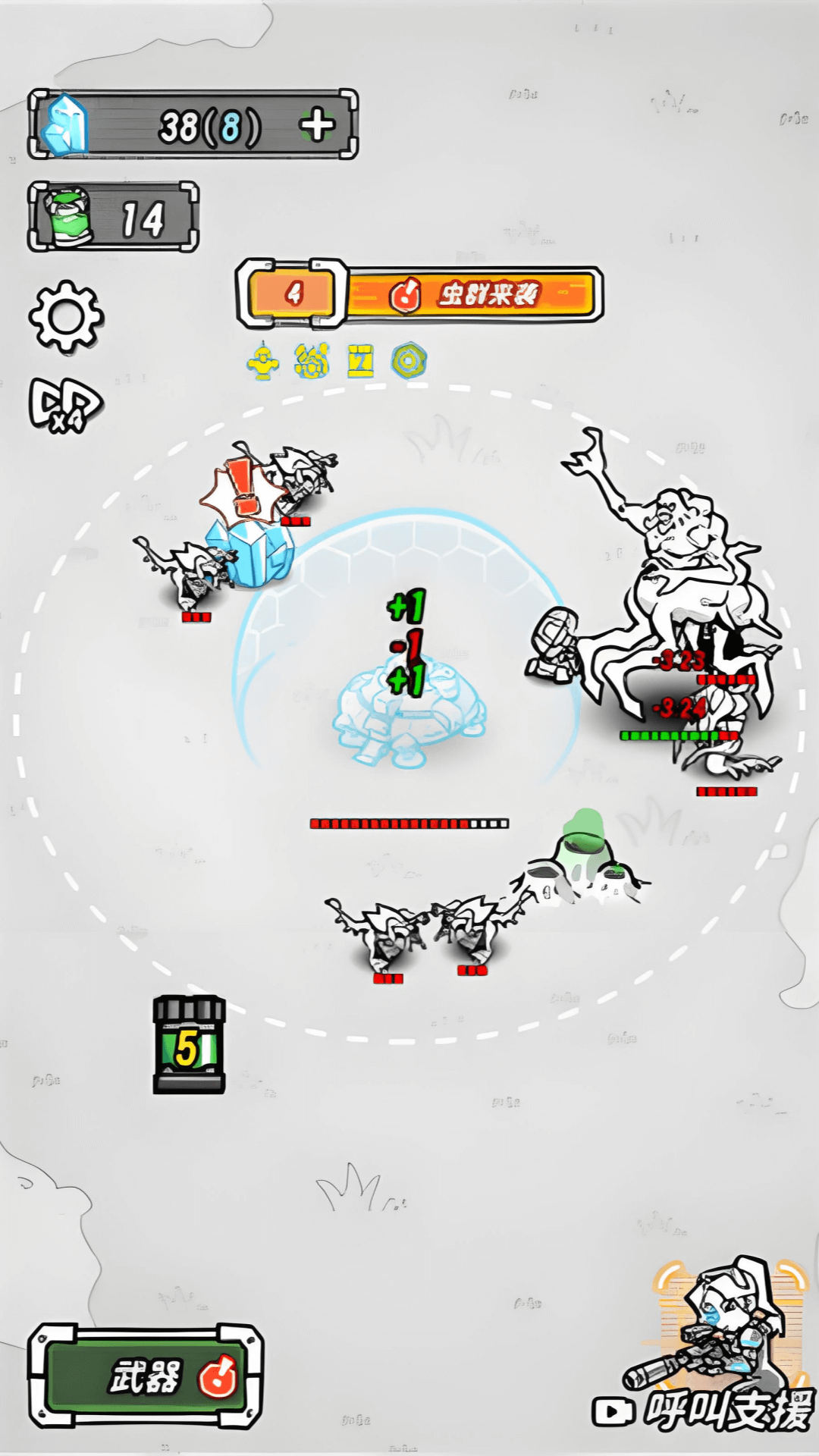 3、利用水晶升级武器、工人和基地。