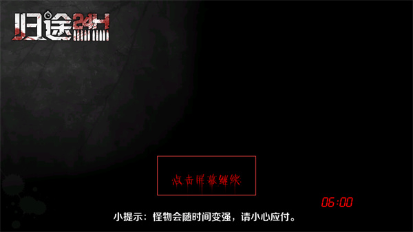 1、点击屏幕继续按钮进入游戏,查看小提示了解怪物会随时间变强的机制,准备开启生存挑战。