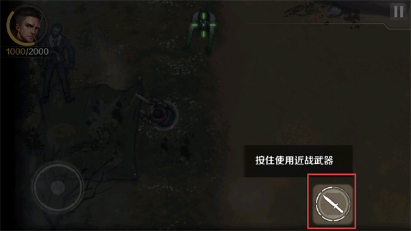 3、按住右侧的近战武器按钮,触发近战攻击动作,对靠近的怪物发起攻击,消耗其血量。